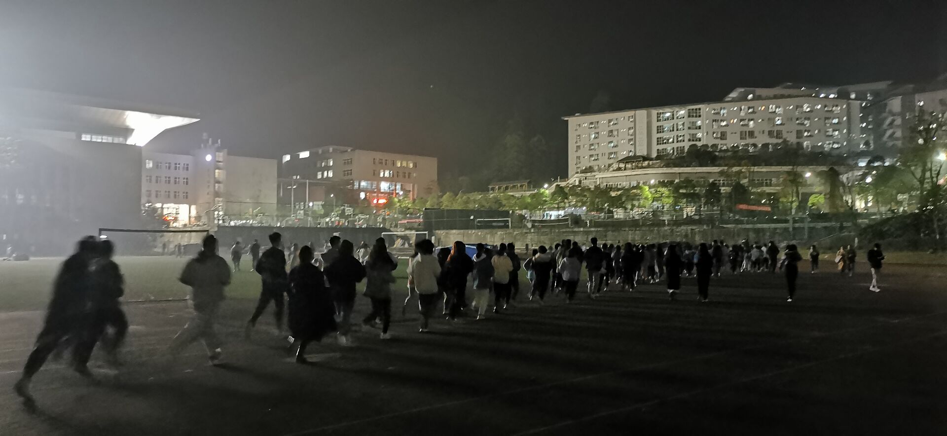 11月10日晚9点,校学生自律委员会全体成员在学校田径场主席台前集合、热身、出发,夜跑地点为学校田径场,路程约1000米,用时约10分钟。在主席团成员张影、活动部部长卢智的带领下,全体人员迈着稳健的步伐,高呼响亮的口号,斗志昂扬、激情四射,成为田径场上一道靓丽的风景线。