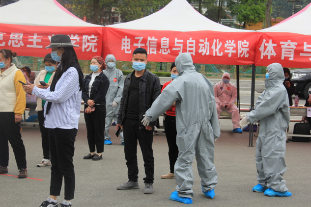 活动伊始,校自律委主席卢智对志愿活动工作进行安排,学生工作部部长罗清杨了解学生返校情况,对学生干部们的工作表示肯定,并强调疫情防控的重要性,希望学生干部们用实际行动践行志愿精神,用责任和担当展现阿师风采。同学们按照要求佩戴口罩,保持一米的安全距离,确保顺利、安全完成返校流程。志愿现场设有临时核酸采样点和各二级学院返校登记处,对返校学生进行再一次核酸检测,领取核验凭证。在老师和学生干部们的引导下,同学们有序地出示健康码和行程卡,确认无异常后,填写返校实名登记。最后,现场工作人员提醒入校的同学们,在核酸检测结果出来之前,避免聚集性活动。