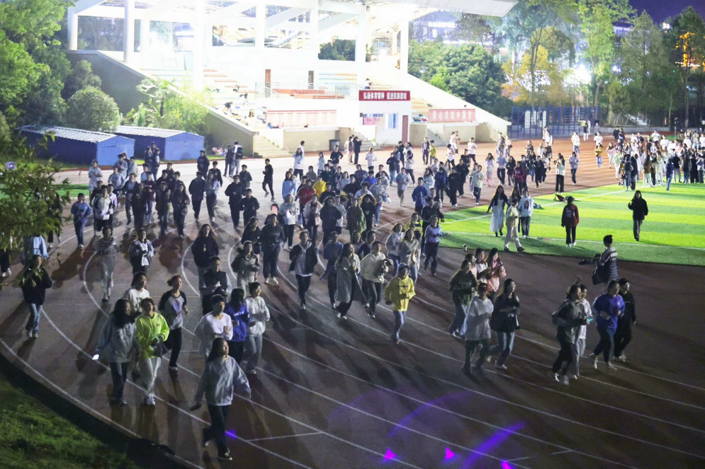 该活动从2024年4月9日至5月24日共计46天,参与人员在每周一至周四晚上21:10准时到操场集合,由校自律互助委员会夜跑工作人员进行考勤并统一组织夜跑,活动还特设了周五至周日自愿跑的形式。操场上荧光点点,同学们热情洋溢,奋力奔跑的身影,展现出阿师学子青春激昂的风采。