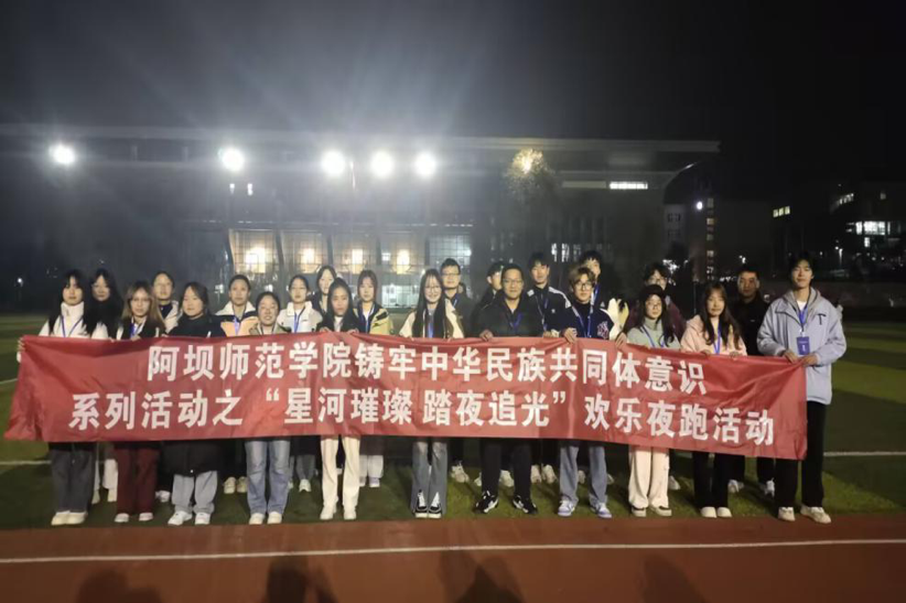 【本网讯】为丰富校园文化生活,帮助学生释放压力、锻炼身体、拓展社交,并培养自律习惯,增强中华民族共同体意识,阿坝师范学院于2025年3月17日至5月18日举办了“星河璀璨 踏夜追光”欢乐夜跑活动。全校学生踊跃参与,反响热烈。