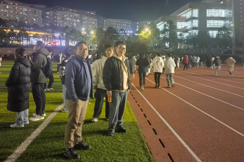 活动当晚,学生工作部副部长更让孝亲临现场,穿梭于学生和工作人员之间,详细了解活动情况并对同学们的积极参与表示欣慰。他多次强调运动安全的重要性,提醒大家鞋带散开时不要在跑道上系,身体不适时不要硬撑,确保每位同学的安全意识根植于心。