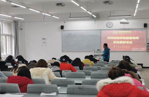 【本网讯】为全面提升我校公寓工作管理能力与服务水平,提升宿管老师素质能力与职业技能,加强我校宿管老师队伍专业化、职业化建设,引导学生规范在宿舍内的行为习惯。11月26日下午4:00我校于树人楼C103举行宿管老师职业素质考试。参加此次考试的有阿坝师范学院全体宿管老师。本次考试由学工部副部长杨友国、学工部老师李伟伟监考。