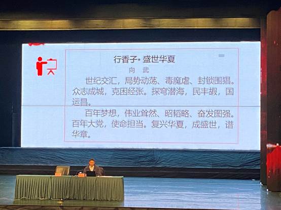 【本网讯】为庆祝中国共产党成立100周年,进一步落实习近平总书记对开展好党史学习教育的全面动员和部署。4月8日中午14:30,我校于桃源大剧院开展“学党史、颂党恩、跟党走”专题讲座。本次讲座由我校党委书记吴昊同志主持,党委副书记、校长向武同志宣讲。全校无课教师、学生党员、学生干部参与聆听。