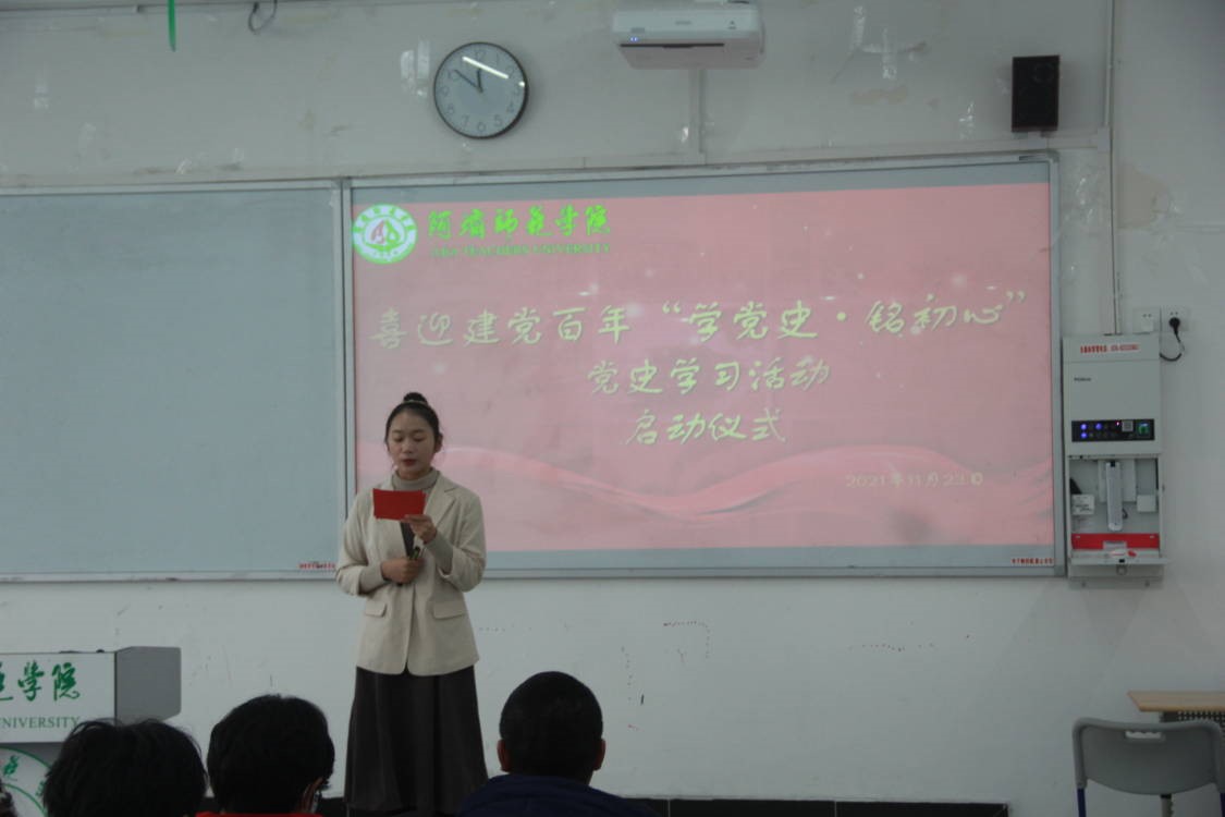 【本网讯】为了进一步贯彻落实上级要求及学校关于开展党史学习教育的工作方案精神,响应“学史明理、学史增信、学史崇德、学史力行”的号召, 11月23日11:50,校学生自律委员会全体成员于树人楼c103参加喜迎建党百年“学党史·铭初心”党史学习教育启动仪式,本次仪式由素质拓展部副部长邱姝铭主持。