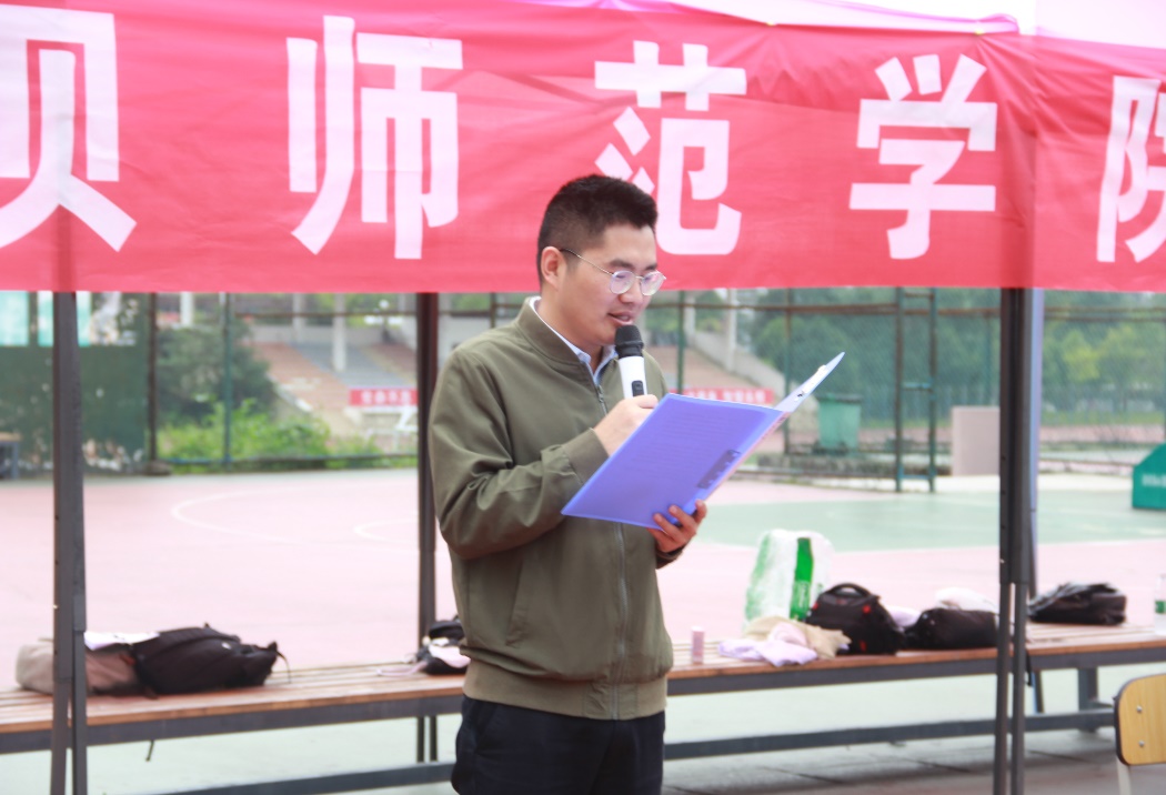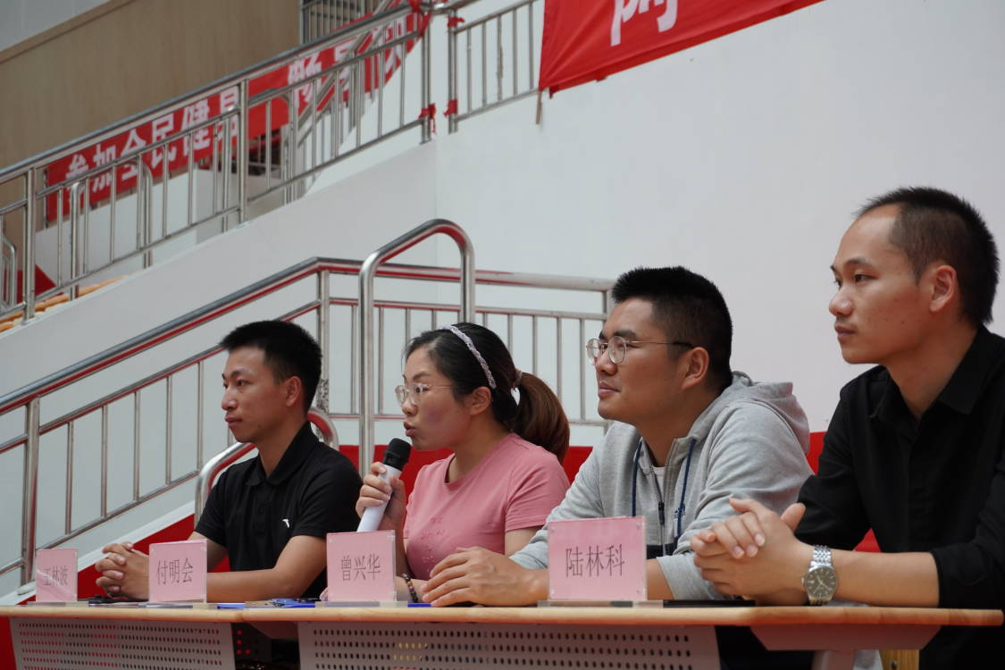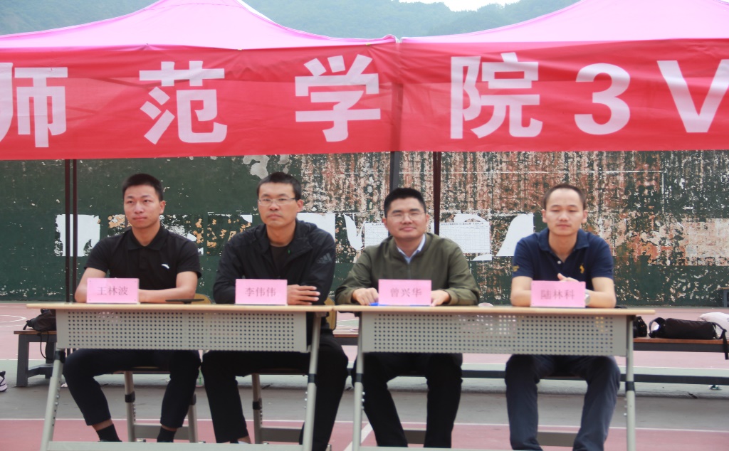 10月2日上午8:30,参加活动的运动员、裁判员、志愿者于学校篮球场集合,举行本次3v3篮球比赛开幕式。莅临本次开幕式的嘉宾有:校共青团委员会曾兴华、陆林科老师、学生工作部王林波老师、文学与传媒学院李伟伟老师。开幕式由校学生自律委员会办公室石菲主持。议程第一项,全体肃立,奏唱国歌。议程第二项,由校共青团委员会曾兴华老师为本次开幕式致辞。他表示:希望全体运动员发扬“友谊第一,比赛第二”的精神,做到不屈不挠,顽强拼搏。在篮球场上拼出优异成绩,赛出竞技水平、赛出道德风尚、赛出个性风采、赛出团结友谊。并预祝全体参赛队员取得优异成绩,预祝我校篮球比赛获得圆满成功!随后,裁判员代表胡涛、运动员代表王小龙依次进行宣誓。最后由学生工作部王林波老师宣布本次篮球比赛正式开始!
