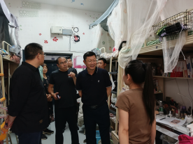 【本网讯】为了切实了解我校学生的生活学习情况,倡导学子们养成良好的生活习惯,营造一个安全舒适的生活环境,2022年6月5日15时,在党委副书记、校长向武的带领下,党委常委、副校长马昌威、学生工作部部长罗清扬、对外合作处处长钟顺秋、后勤基建处副处长官孙平等领导老师走访学生寝室。
