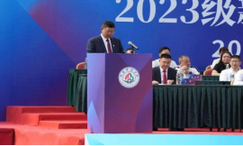 国歌声中,国旗徐徐升起,迎风猎猎飞扬,开学典礼也渐渐拉开了帷幕。作为学校的新鲜血液,新生的到来给校园增添了更多生机与活力,新生代表曾雯发言表达了对大学生活的美好期盼与宏伟规划。正如她所言“夙夜罔或不勤。不矜细行,终累大成。”来自高年级的学生代表张奡遹以老生的姿态,向各位新同学树立新的风气,并提出“独立 、平衡、行动”三大关键词,寄托着对新生最真诚的祝福,为2023级新生生活指引了方向。潜心育人,静水流深,周丽代表全体教师对新同学表达了热烈的欢迎,并给予了忠心的祝贺,愿同学们既有勇气直面过往生活带来的影响,也能充满信心,敢于迎接挑战,开创新的人生篇章。