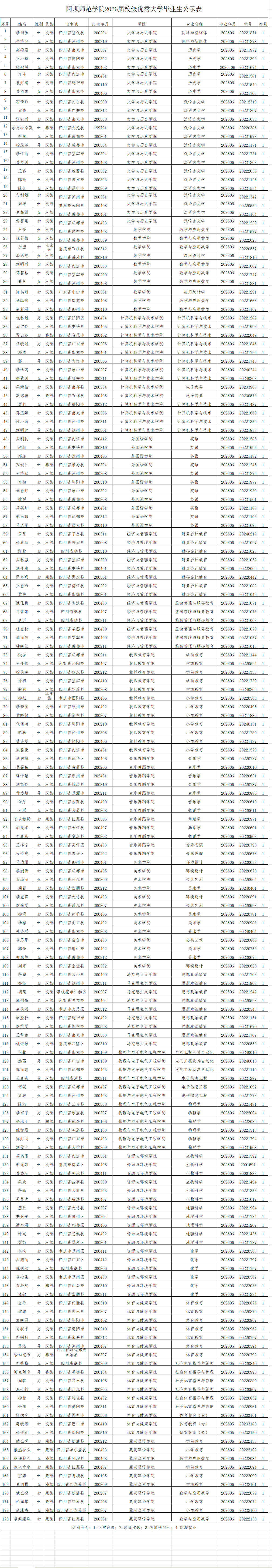 阿坝师范学院2026届校级优秀大学毕业生评优公示